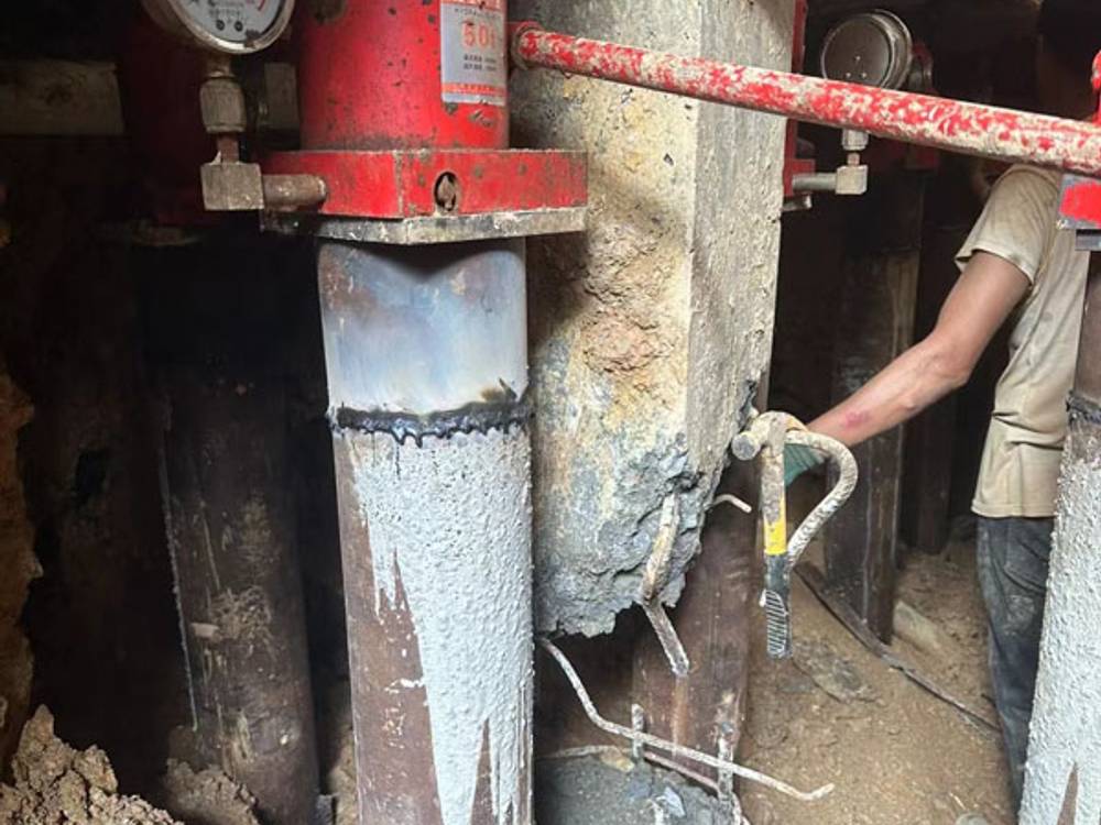 沉樁作業:利用振動錘將鋼管樁緩慢插入土中,嚴格控制樁身的垂直度,確保鋼管樁的合理承載。
